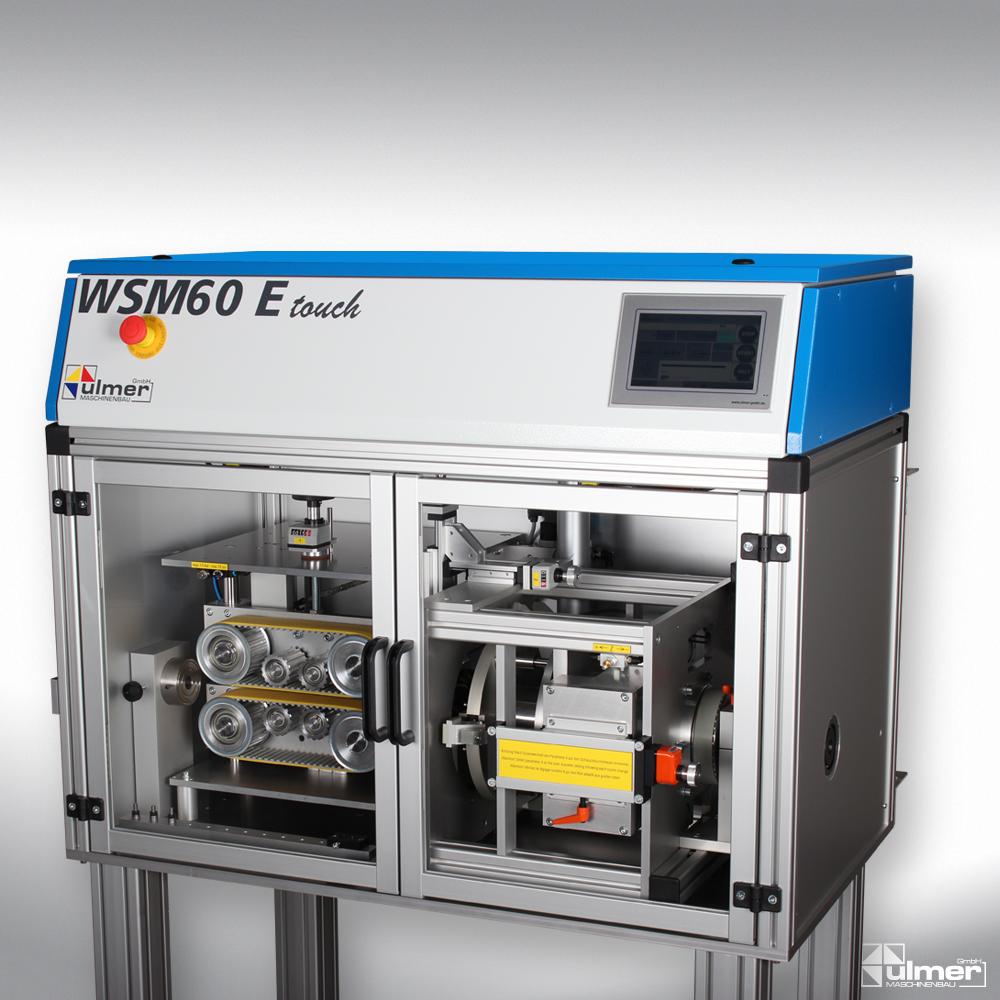 The WSM60 E touch from the WSM series cuts corrugated pipe from 5 mm (NW3) – 60 mm (NW 50) outer diameter burr-free on the on the crest of the corrugation. This guarantees the interaction of sensors for the detection of the crest and a mechanical guiding during the rotative cut. It does not matter if the crest is wide or ultra-fine.