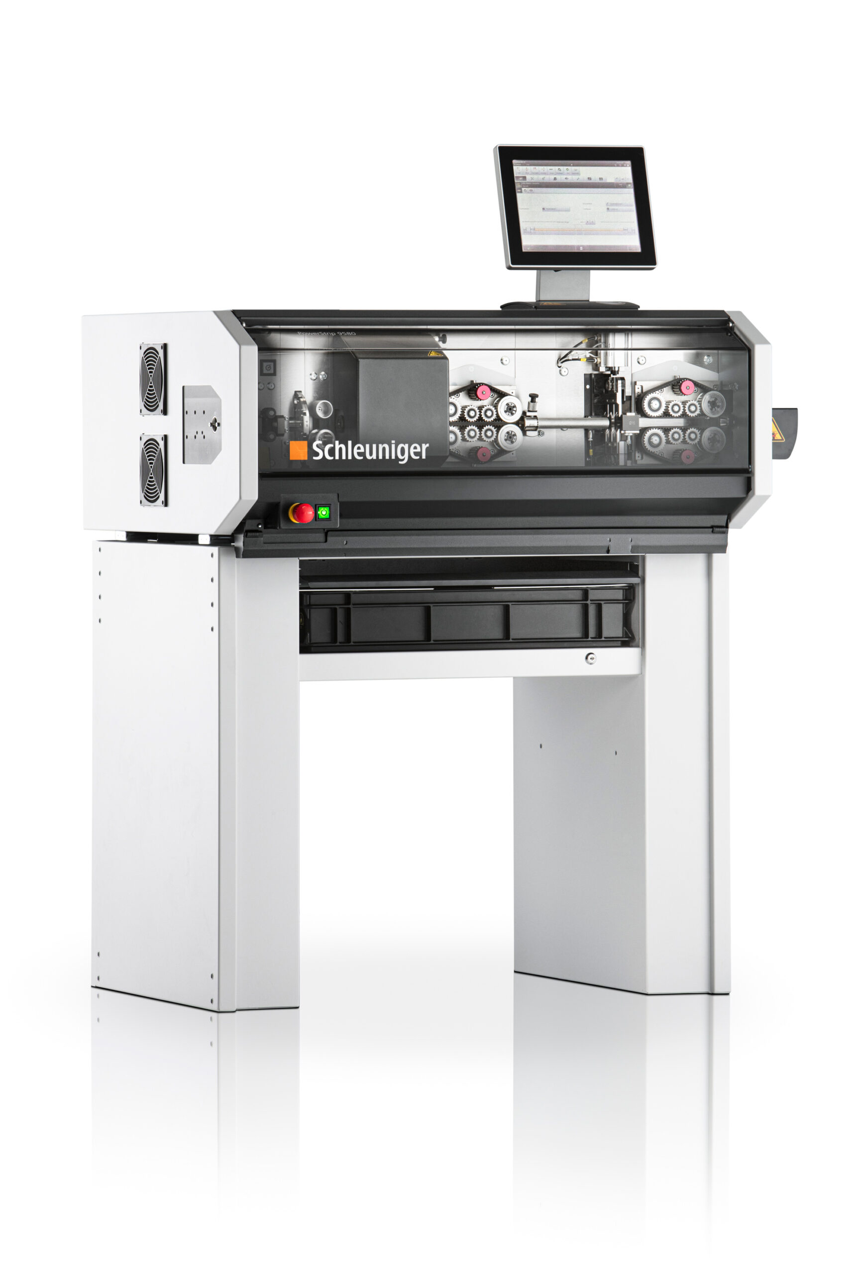 A máquina de corte e decapagem automática PowerStrip 9580 foi projetada com foco em processamento de alta precisão, excelente produção e alto grau de flexibilidade de produção. Servo drives potentes garantem velocidades de alimentação rápidas e altas forças de decapagem. Uma unidade de controle inteligente garante tempos de ciclo curtos e desempenho de alta qualidade repetível. Um conceito de segurança sofisticado, tempos de troca curtos e operação de máquina moderna e intuitiva completam o perfil exclusivo da máquina.