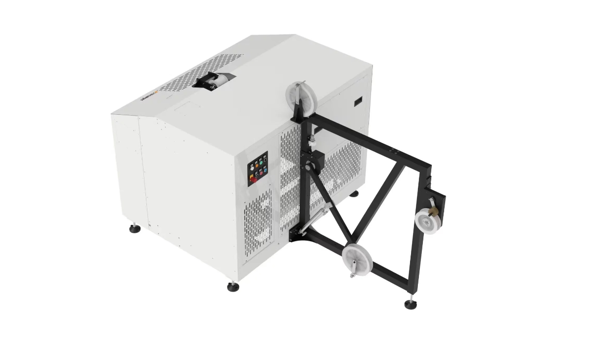 O PreFeeder 4350 é um poderoso sistema de alimentação de cabos para bobinas pesando até 400 kg (880 lbs.). O sistema se distingue pelo seu design simples e facilidade de uso. Para fácil manuseio da bobina e trocas rápidas, todos os eixos são acionados eletricamente. O PreFeeder 4350 usa um design sem eixo para fácil carregamento e descarregamento de bobinas. O acumulador de cabos integrado controla a velocidade do acionamento de desbobinamento. As funções de vigilância fornecem segurança aprimorada durante a configuração e operação. Com este conceito, uma solução econômica para uma ampla gama de aplicações é alcançada.